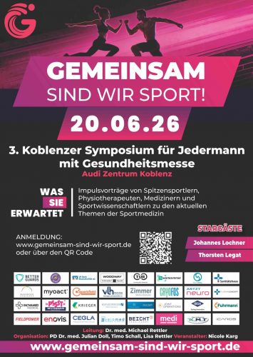 Sportmedizin und Profifußball: 3. Koblenzer Symposium 2026 Am 20. Juni 2026 findet im Audi Zentrum Koblenz das 3. Koblenzer Symposium für Jedermann mit Gesundheitsmesse statt. Veranstalter